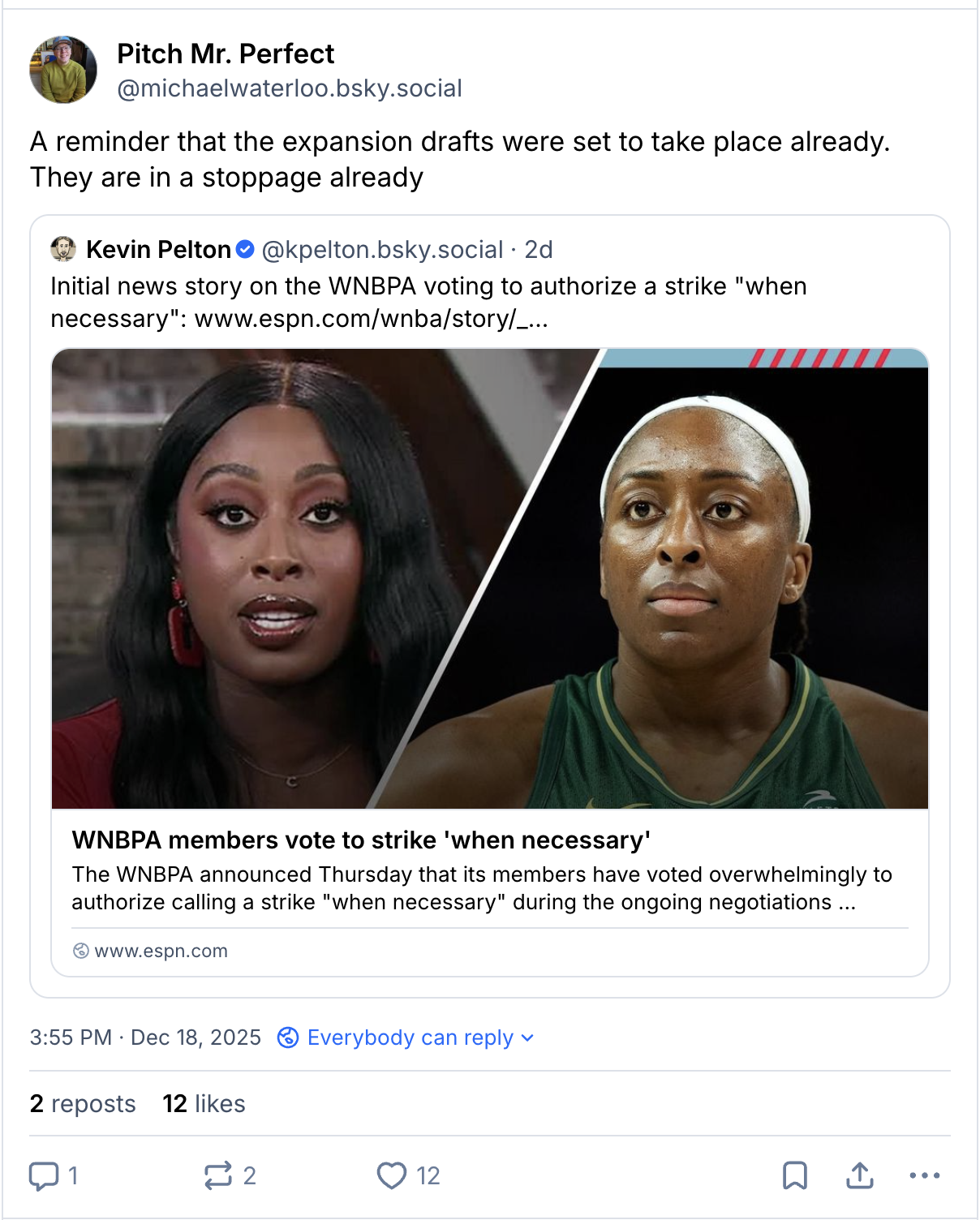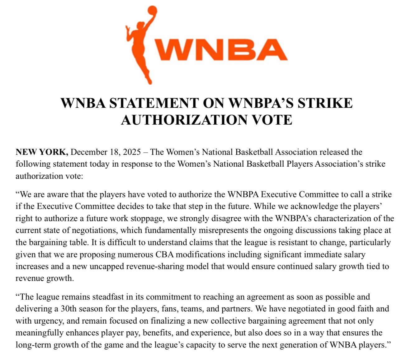 We are now reaching two months since the initial deadline for the WNBA and WNBPA CBA negotiations. And the latest news is that the WNBPA has approved a strike "when necessary."