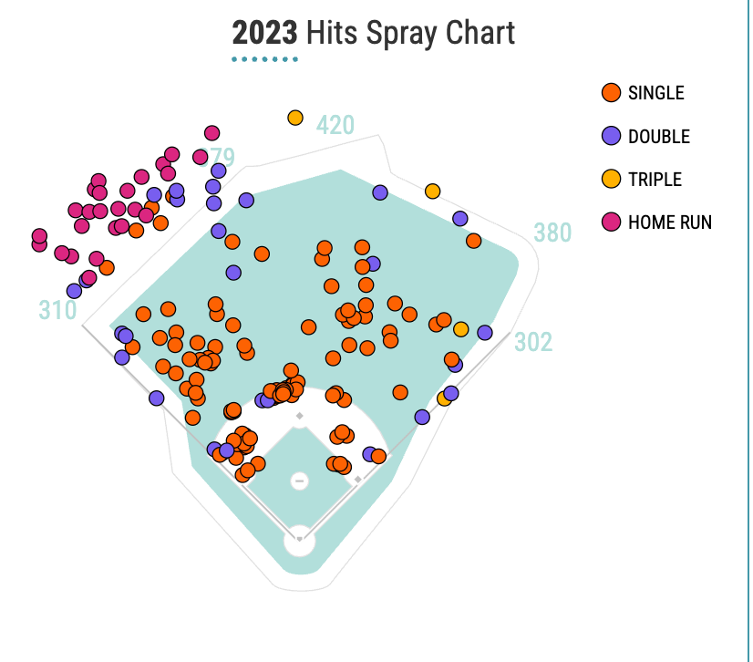 Here's what a typical spray chart looks like for Bregman throughout his career. This one is from 2023 in Houston.