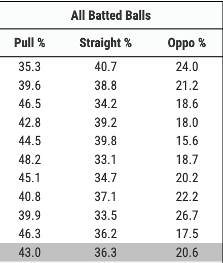 Bregman is a pure pull hitter. The average across the league among all hitters is a 37.4 percent pull rate, meaning that's how often a hitter will pull the ball (right-handers to left field and left-handers to right field).