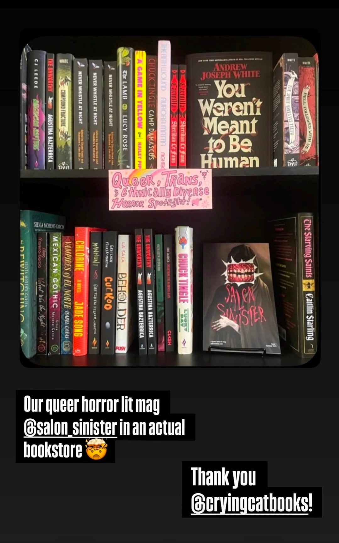 BW: 'Salon Sinister' is really just my love letter to the queer horror community and just queers in general. And it was important to me that with 'Salon Sinister,' we focused on voices that might get overlooked at other publications or who might not be considered, I don't know, queer enough or horror enough for others, and allowing for that humanity within queer horror. So 'Salon Sinister' is a literary magazine, but with a zine feel that's a little rougher around the edges and feels a little more vulnerable. And the stories within the poetry within the art within, so much of it when you're reading it or looking at it or just taking it in, it feels like an open wound that nobody has really dressed. And I think that is part of the ... terror that 'Salon Sinister' has to offer because it is very raw, and it is, you know, unfiltered in so many ways. And so to be able to produce this with so many beautiful contributors is so fulfilling. And I think being able to have those voices out there in the world and distribute 'Salon Sinister' the first issue, not only digitally, but physically, keeps those voices alive and cements us within this time in history.