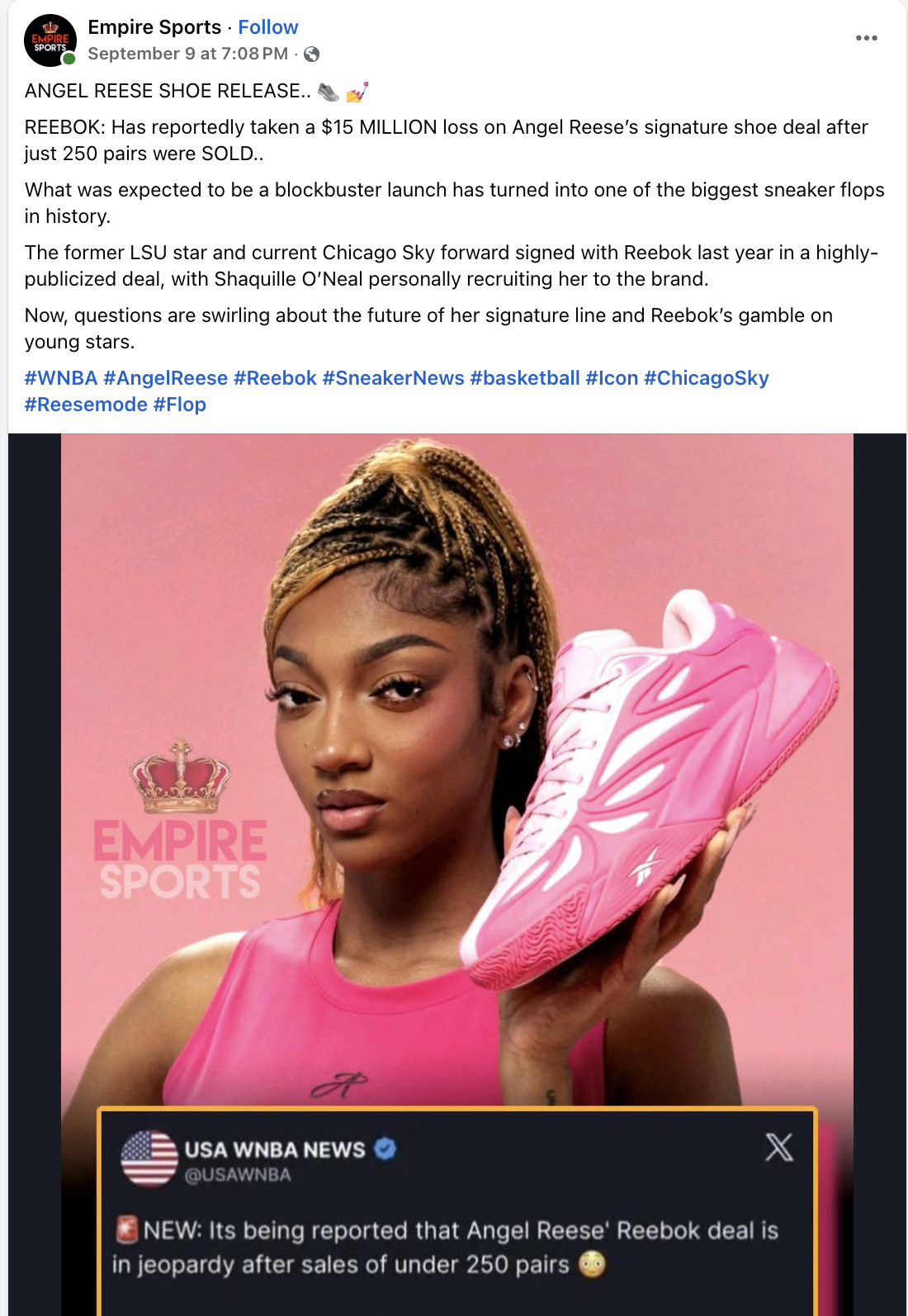 Because people will mention "well I saw that Angel Reese's shoes were a flop and couldn't sell, sending Reebok panicking."