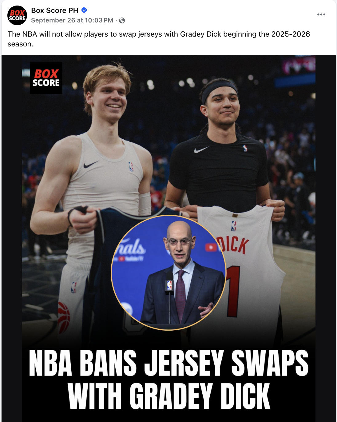 But when the commissioner, Adam Silver, who I like overall, was asked about it, here's what he had to say: